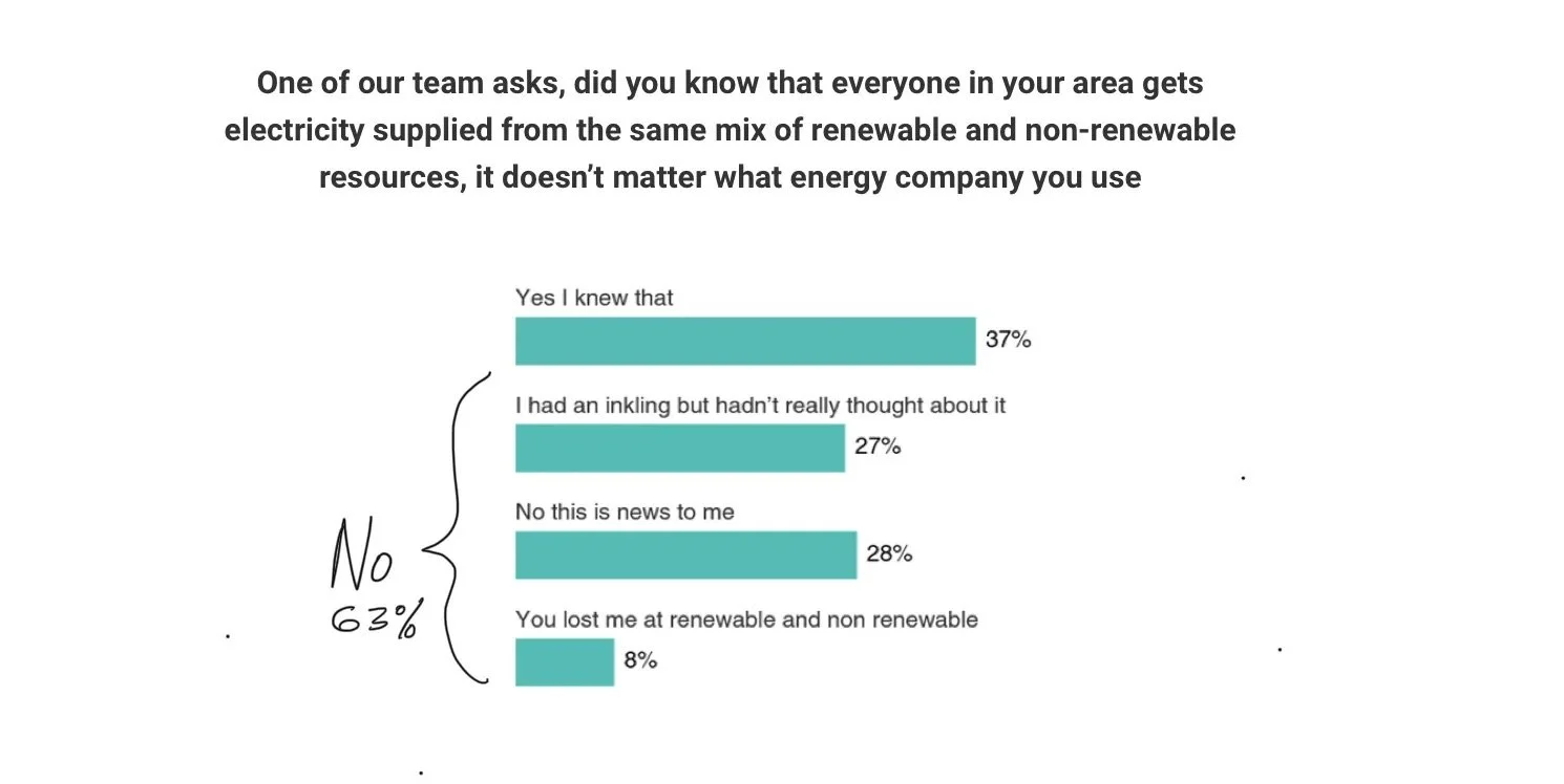 - 60% of surveyed consumers were unaware that their electricity is a mix of renewable and non-renewable sources.