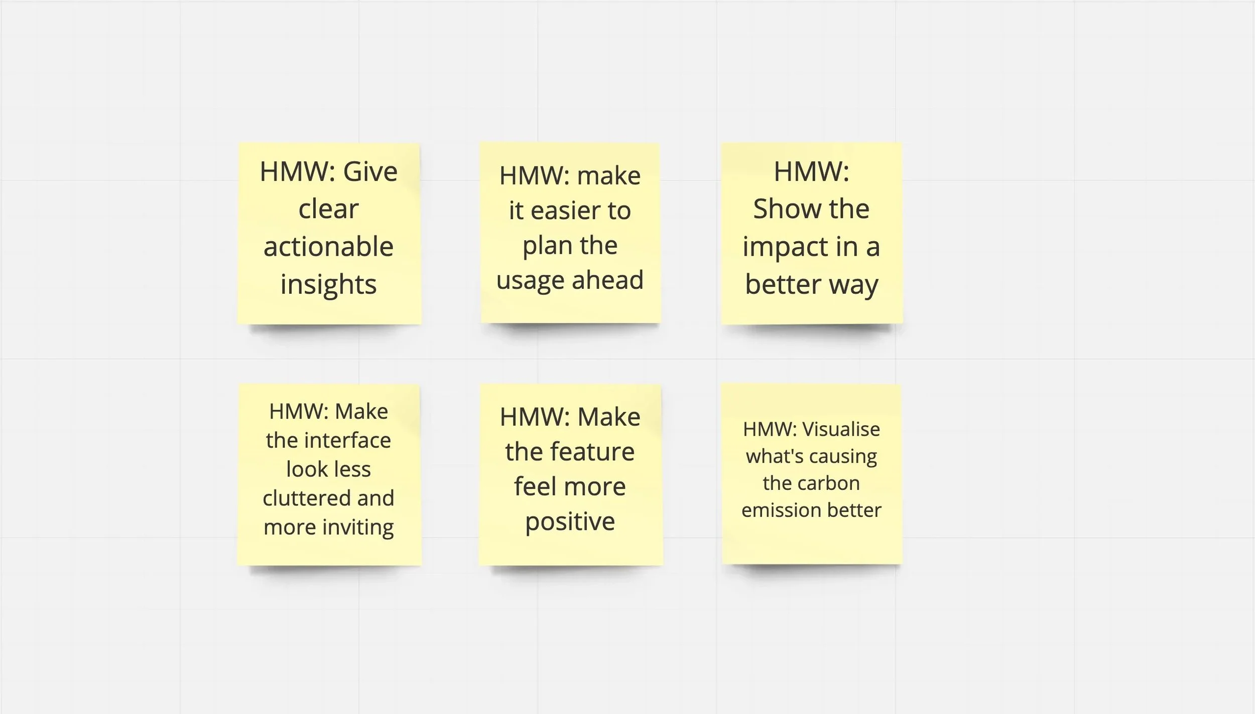 With a clear view of the problems, we started thinking about how might we solve these problems. With the help of the product owner, we narrowed down to 6 points.